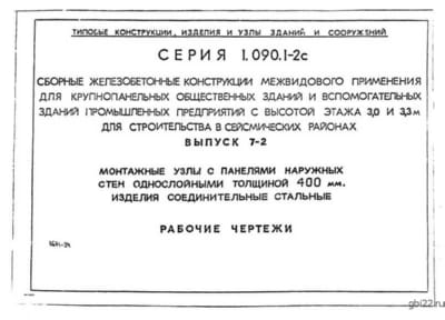 | Название стандарта | Сборные железобетонные конструкции межвидового применения для крупнопанельных общественных зданий и вспомогательных зданий промышленных предприятий с высотой этажа 3,0 и 3,3 м для строительства в сейсмических районах. |