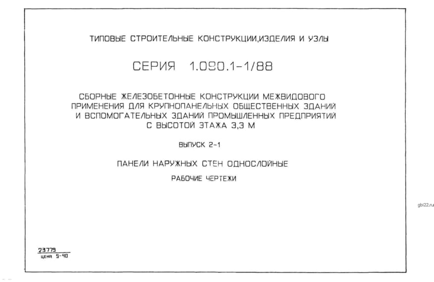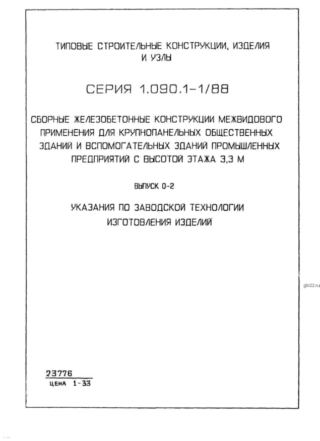 | Название стандарта | Сборные железобетонные конструкции межвидового применения для крупнопанельных общественных зданий и вспомогательных зданий промышленных предприятий с высотой этажа 3,3 м. |