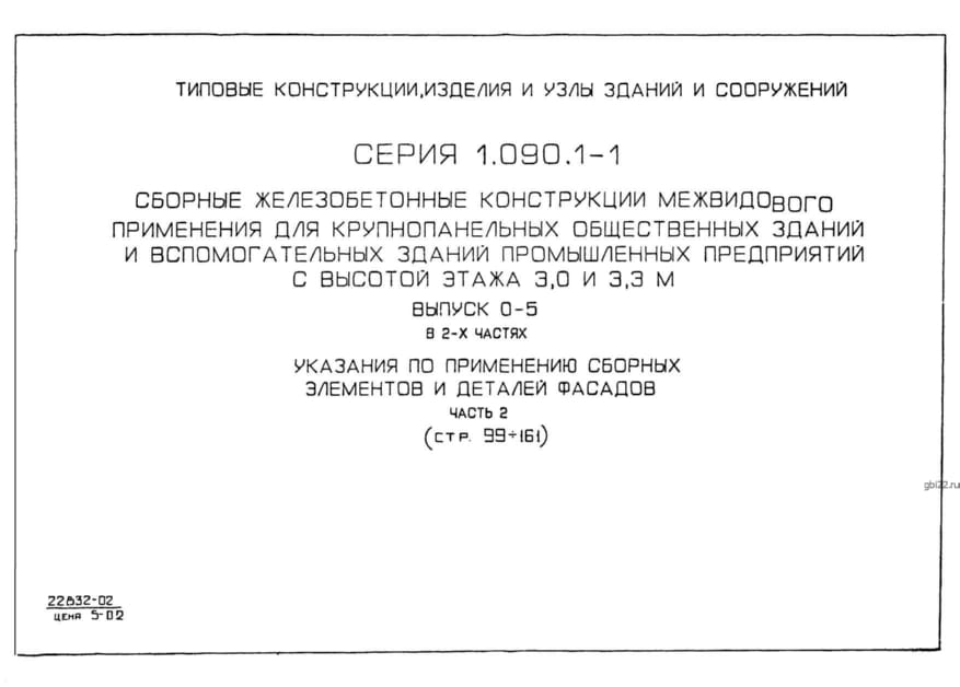 | Название стандарта | Сборные железобетонные конструкции межвидового применения для крупнопанельных общественных зданий и вспомогательных зданий промышленных предприятий с высотой этажей 3,0 и 3,3 м. |
