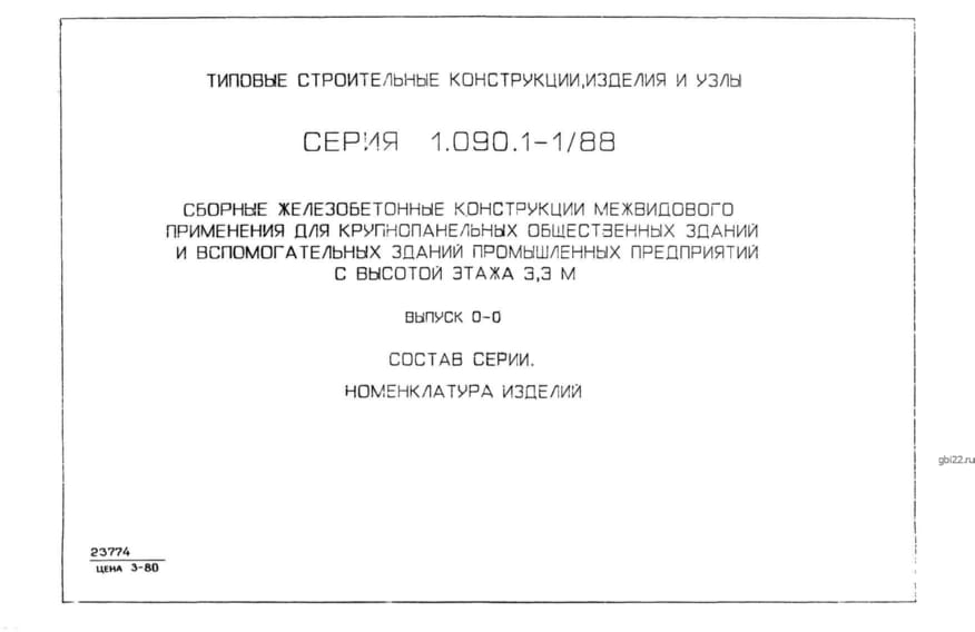 | Название стандарта | Сборные железобетонные конструкции межвидового применения для крупнопанельных общественных зданий и вспомогательных зданий промышленных предприятий с высотой этажа 3,3 м. |