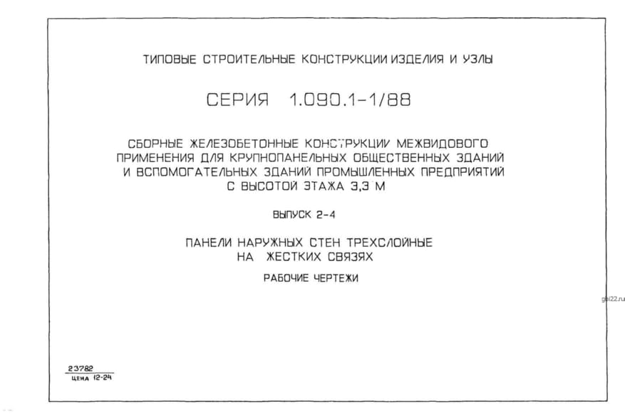 | Название стандарта | Сборные железобетонные конструкции межвидового применения для крупнопанельных общественных зданий и вспомогательных зданий промышленных предприятий с высотой этажа 3,3 м. |