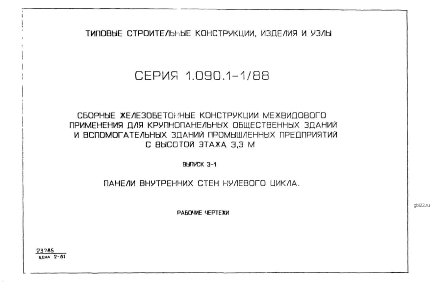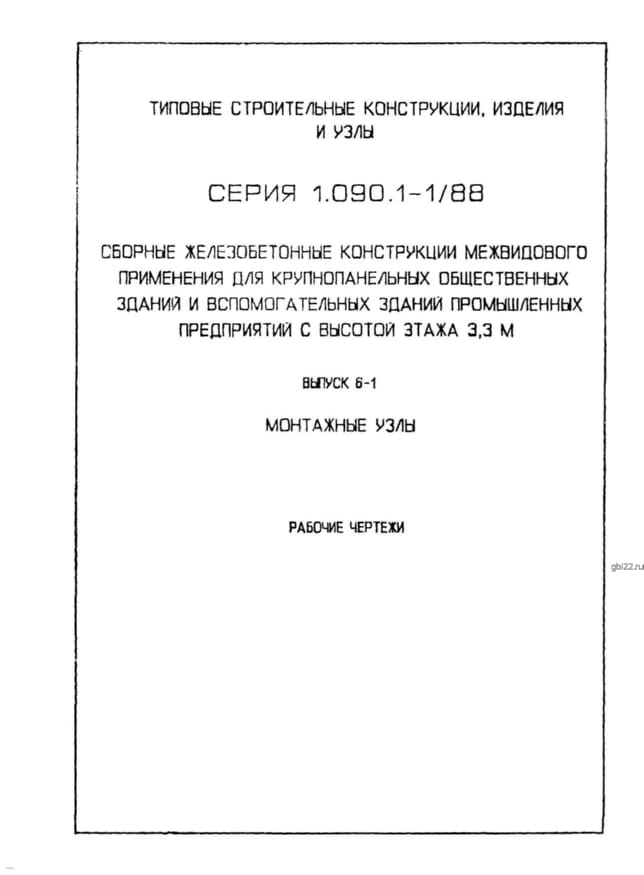| Название стандарта | Сборные железобетонные конструкции межвидового применения для крупнопанельных общественных зданий и вспомогательных зданий промышленных предприятий с высотой этажа 3,3 м. |