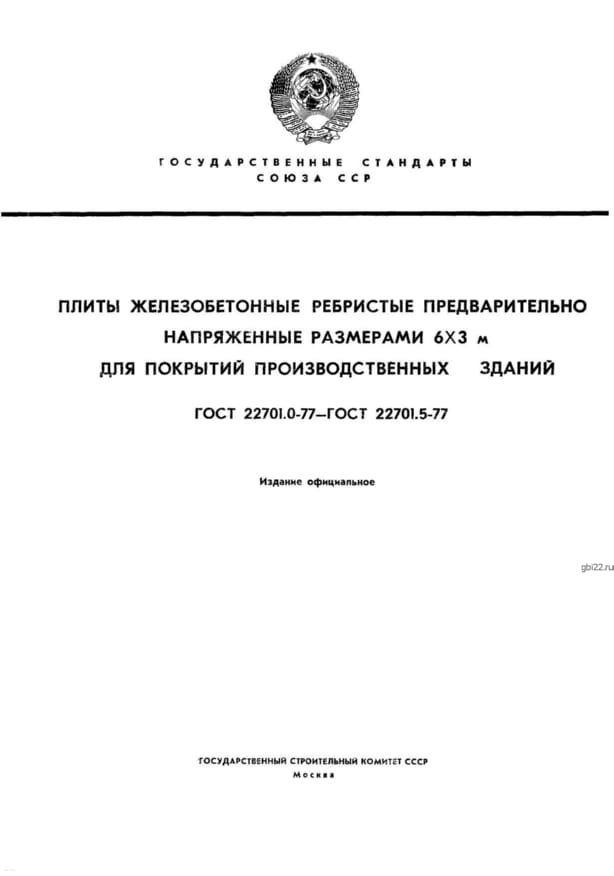 | Название стандарта | Плиты железобетонные ребристые предварительно напряженные размерами 6х3 м для покрытий производственных зданий. Технические условия. |
