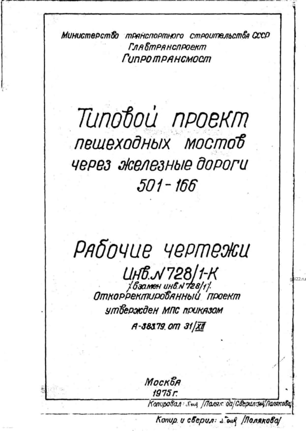 | Название стандарта | Пешеходные мосты через железные дороги. |
