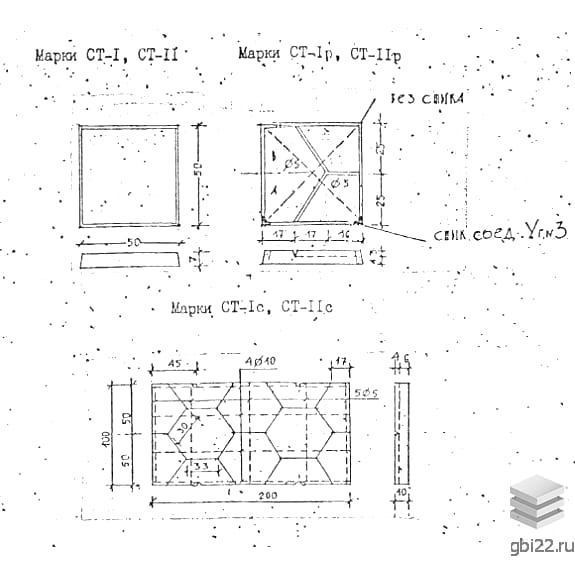 Плиты имеют квадратную форму с трапециевидным или прямоугольным сечением. Допускается нанесение рельефного узора для повышения декоративности.