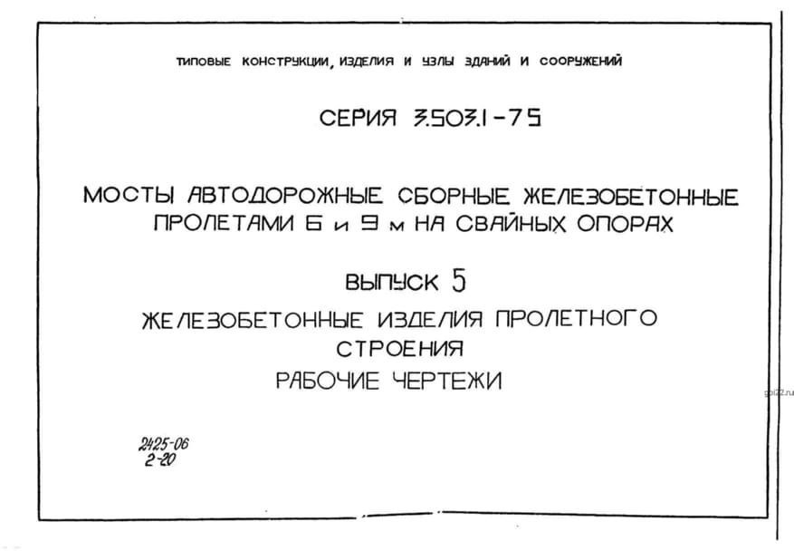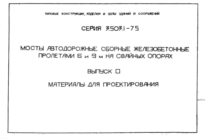 | Название стандарта | Мосты автодорожные сборные железобетонные пролетами 6 и 9 м на свайных опорах. |