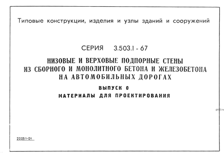 | Название стандарта | Низовые и верховые подпорные стены из сборного и монолитного бетона и железобетона на автомобильных дорогах. |