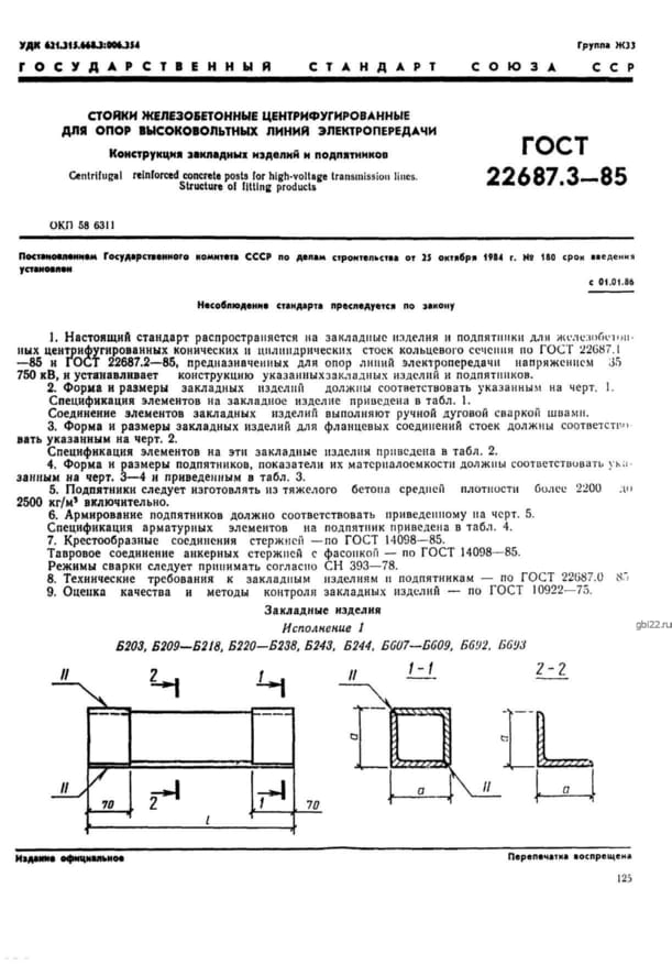 | Название стандарта | Стойки железобетонные центрифугированные для опор высоковольтных линий электропередачи. Конструкция закладных изделий и подпятников. |
