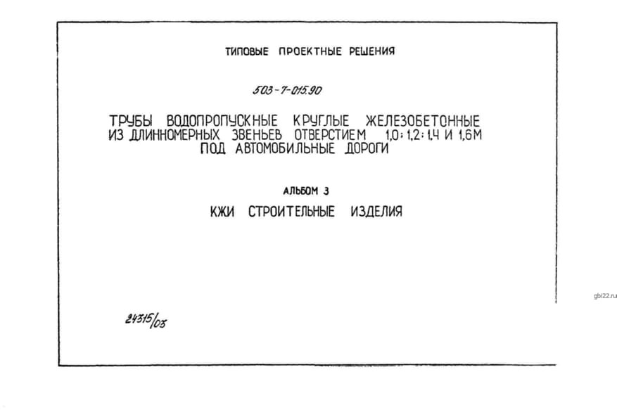 | Название стандарта | Трубы водопропускные круглые железобетонные из длинномерных звеньев отверстием 1,0 1,2 1,4 и 1,6м. под автомобильные дорогие. |