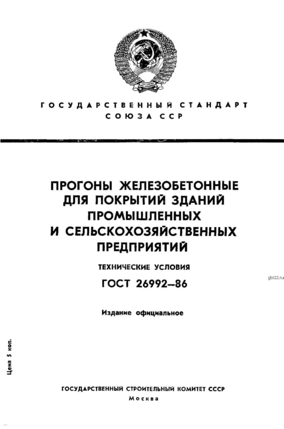 | Название стандарта | Прогоны железобетонные для покрытий зданий промышленных и сельскохозяйственных предприятий. Технические условия. |