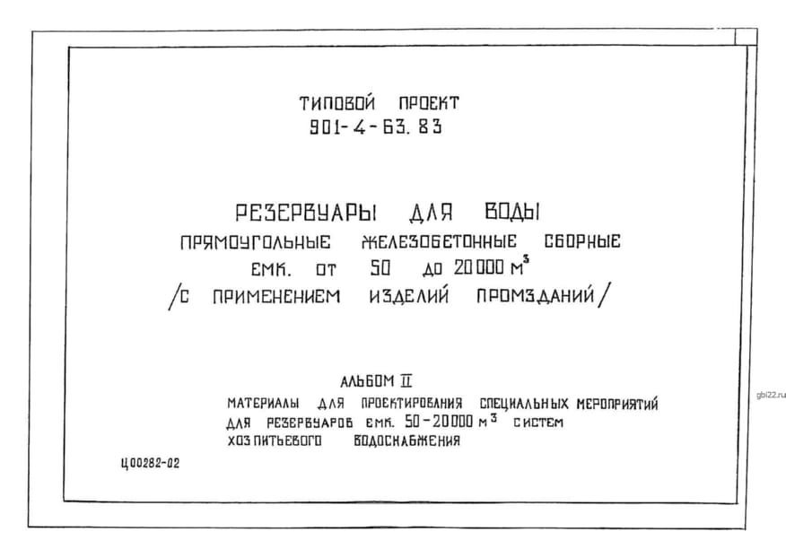 | Название стандарта | Резервуары для воды прямоугольные железобетонные сборные емкостью от 12000 до 20000 м3 (с применением изделий промзданий). |