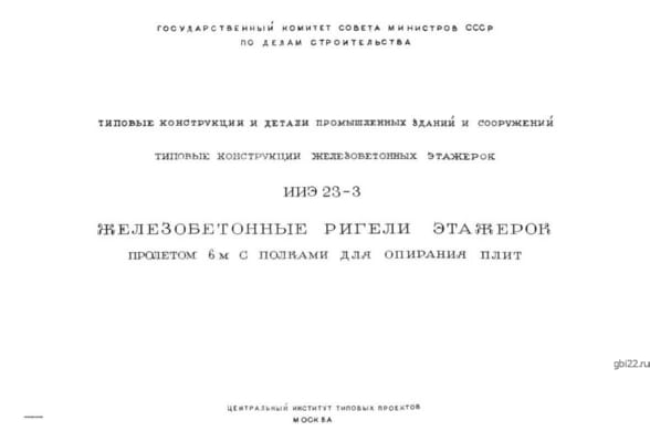 | Название стандарта | Железобетонные ригели этажерок пролетом 6 м с полками для опирания плит. |