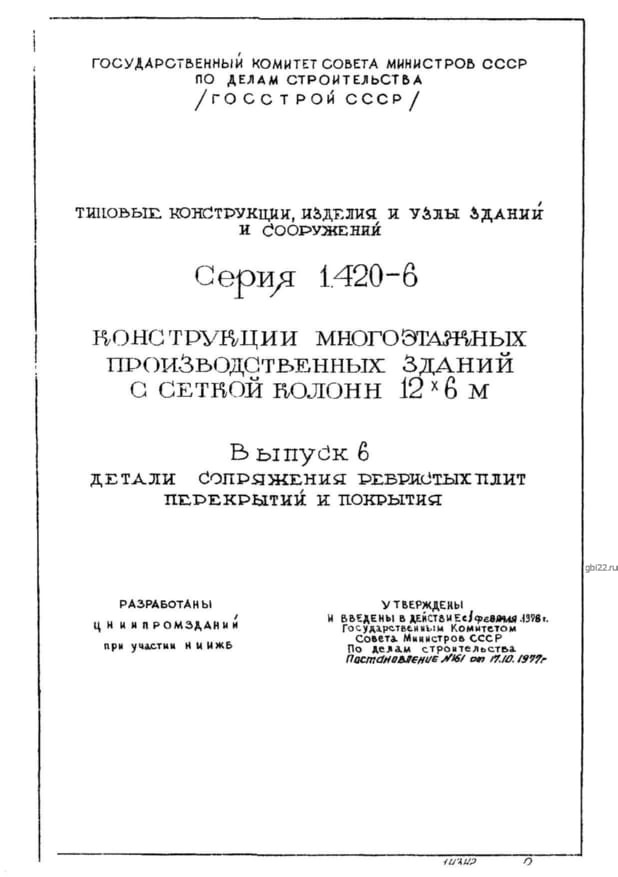 | Название стандарта | Конструкции многоэтажных производственных зданий с сеткой колонн 12х6 м. |