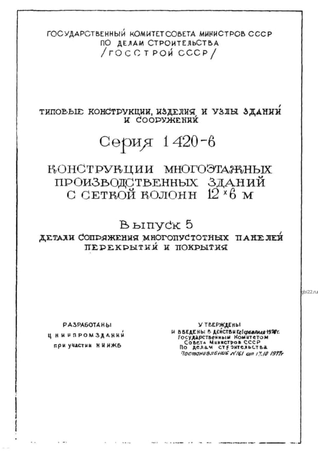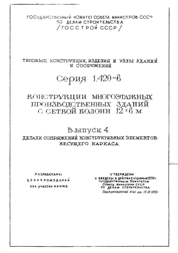 | Название стандарта | Конструкции многоэтажных производственных зданий с сеткой колонн 12х6 м. |