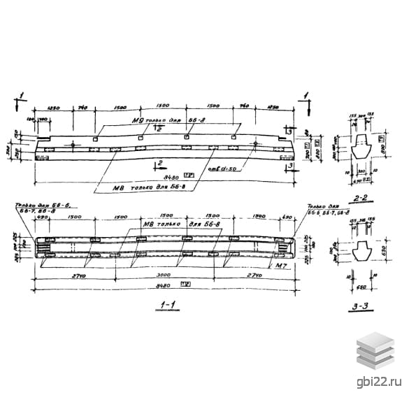 | Название стандарта | Железобетонные ригели пролетом 9 м с полками для опирания плит (натяжение арматуры электротермическим способом). |