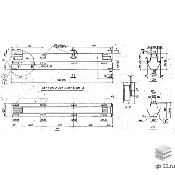 Ригели БЛ 1-4 размеры: длина, мм.: 4980, ширина, мм.: 650, высота, мм.: 800, вес, кг.: 3200, марка бетона: М300. Изделия относятся к категории Ригели железобетонные-Ригели и изготавливаются по технической документации согласно серия ИИ 23-11