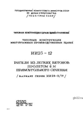 | Название стандарта | Ригели из легких бетонов пролетом 6 м прямоугольного сечения (вариант серии ИИ23-3/70). |