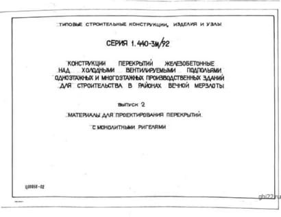 | Название стандарта | Конструкции перекрытий железобетонные над холодными вентилируемыми подпольями одноэтажных и многоэтажных производственных зданий для строительства в районах вечной мерзлоты. |