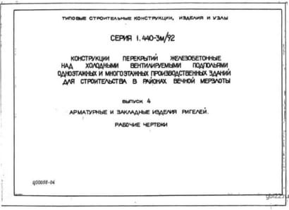 | Название стандарта | Конструкции перекрытий железобетонные над холодными вентилируемыми подпольями одноэтажных и многоэтажных производственных зданий для строительства в районах вечной мерзлоты. |