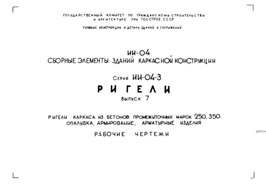 | Название стандарта | Сборные элементы зданий каркасной конструкции. Ригели. |