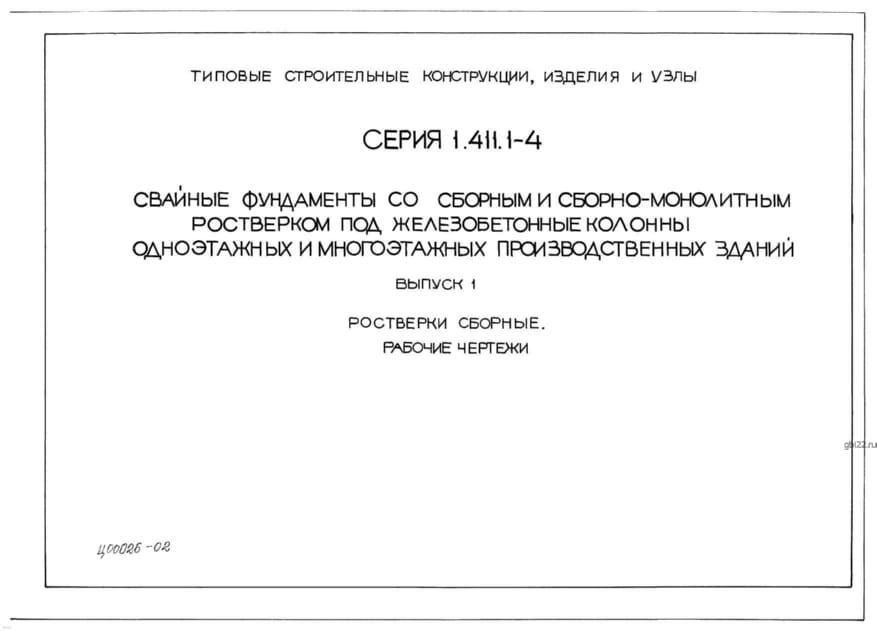 Название стандарта | Свайные фундаменты со сборным и сборно-монолитным ростверком под железобетонные колонны одноэтажных и многоэтажных производственных зданий. |