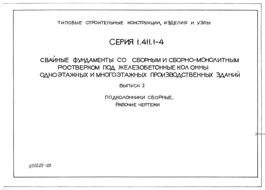 Название стандарта | Свайные фундаменты со сборным и сборно-монолитным ростверком под железобетонные колонны одноэтажных и многоэтажных производственных зданий. |