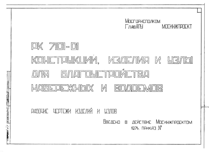 | Название стандарта | Конструкции, изделия и узлы для благоустройства набережных и водоемов. Рабочие чертежи изделий и узлов. |