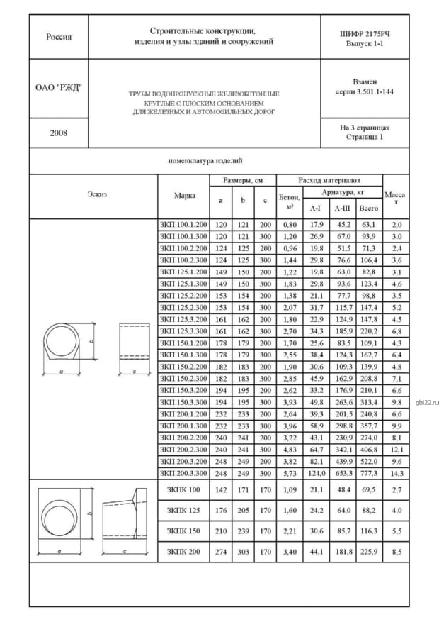 | Название стандарта | Трубы водопропускные железобетонные круглые с плоским основанием для железных и автомобильных дорог. |