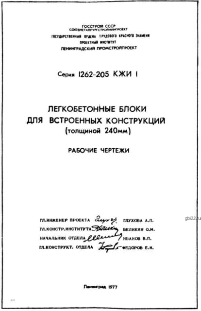 | Название стандарта | Легкобетонные блоки для встроенных конструкций (толщиной 240 мм). Рабочие чертежи. |