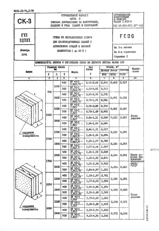 | Название стандарта | Стены из легкобетонных блоков для производственных зданий с агрессивной средой и высокой влажностью (до 80 %). |
