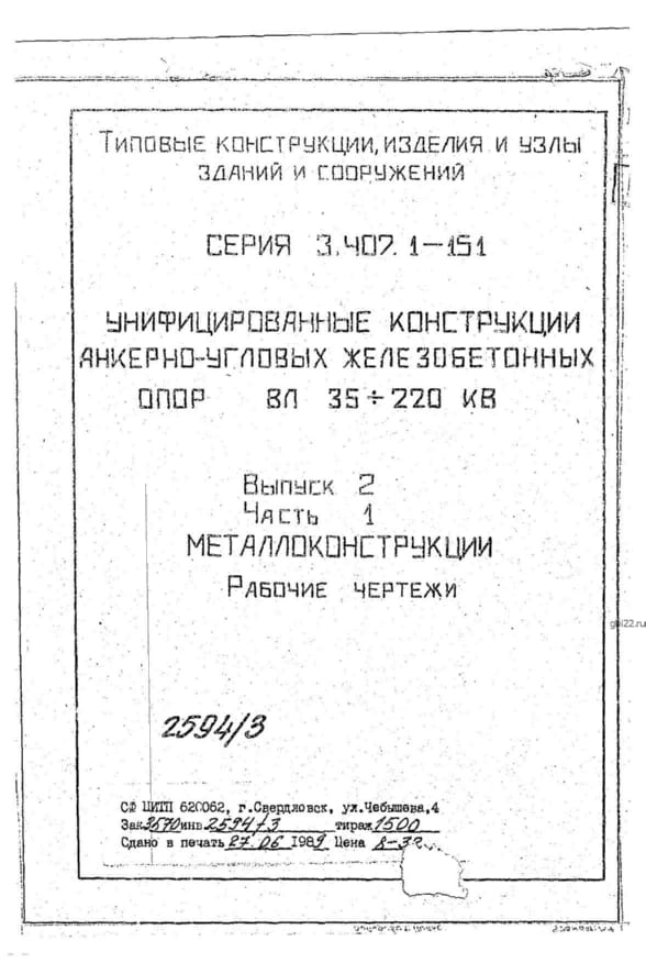 | Название стандарта | Унифицированные конструкции анкерно-угловых железобетонных опор ВЛ 35-220 кВ. |