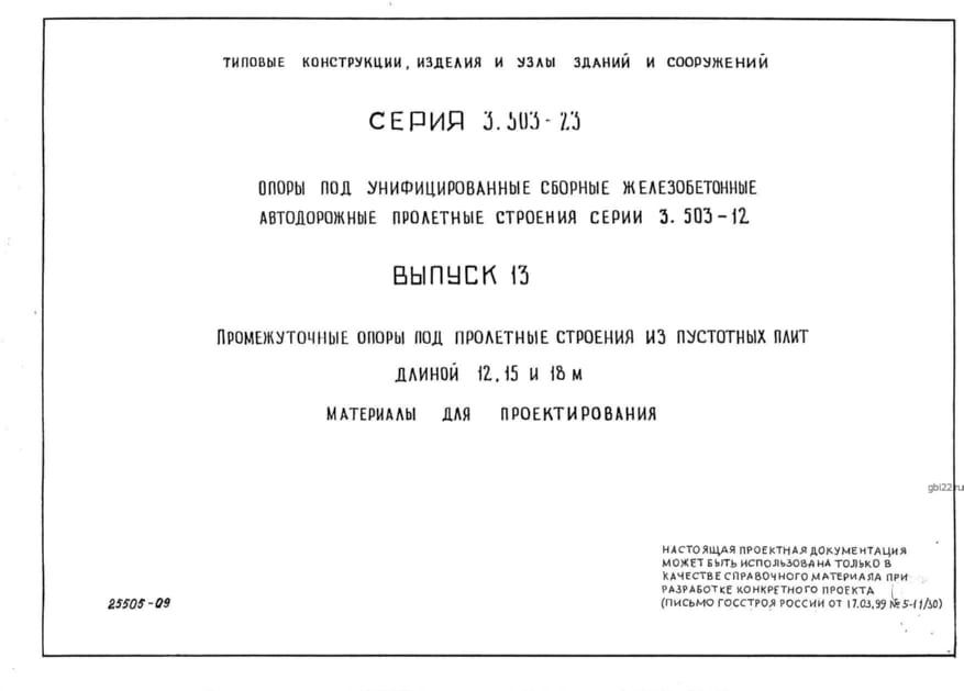 | Название стандарта | Опоры под унифицированные сборные железобетонные автодорожные пролетные строения серии 3.503-12. |