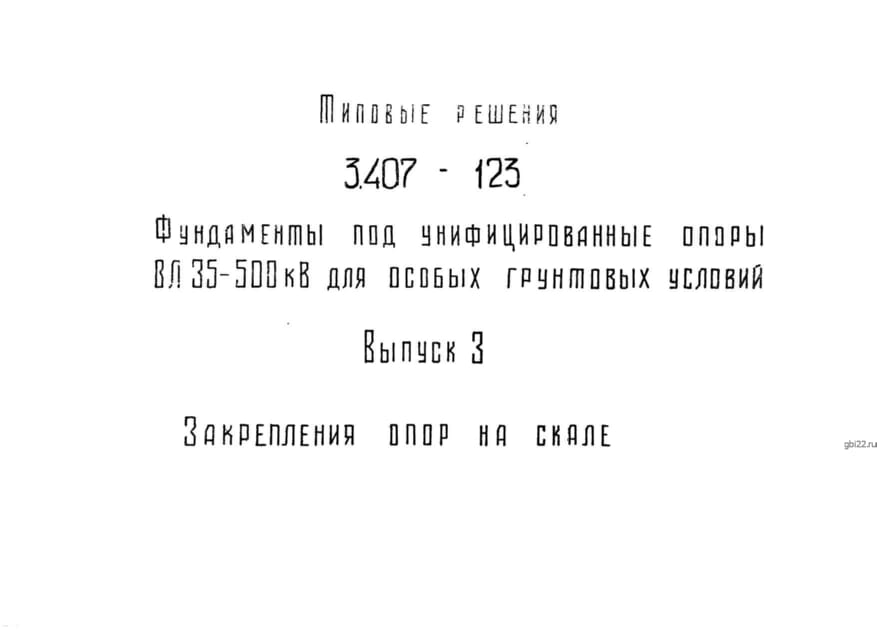 | Название стандарта | Фундаменты под унифицированные опоры ВЛ 35 - 500 кВ для особых грунтовых условий. |
