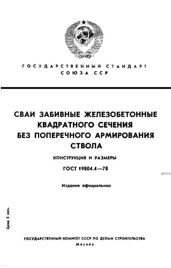 | Название стандарта | Сваи забивные железобетонные квадратного сечения без поперечного армирования ствола. Конструкция и размеры. |
