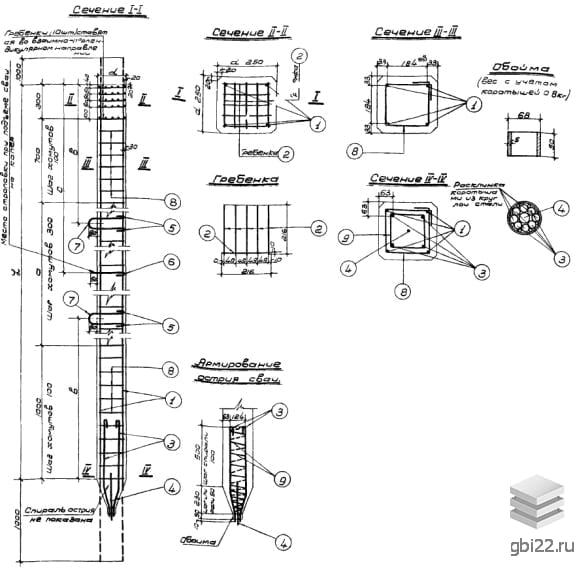 | Название стандарта | Предварительно напряженные железобетонные забивные сваи квадратного сечения длиной от 5 до 25 м с арматурой из высокопрочной проволоки по ГОСТ 8480-57. Рабочие чертежи. |