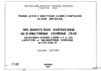 | Название стандарта | Предварительно напряженные железобетонные забивные сваи квадратного сечения длиной от 5 до 25 м с арматурой из высокопрочной проволоки по ГОСТ 8480-57. Рабочие чертежи. |