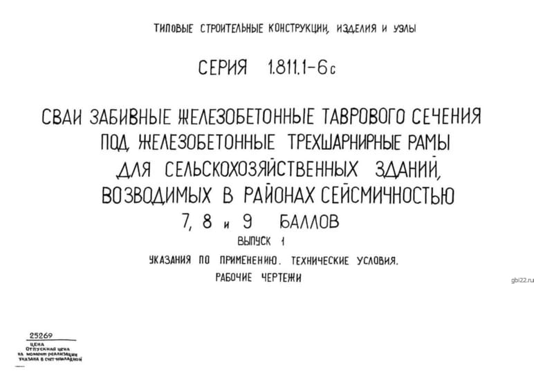 | Название стандарта | Сваи забивные железобетонные таврового сечения под железобетонные трехшарнирные рамы для сельскохозяйственных зданий, возводимых в районах сейсмичностью 7, 8 и 9 баллов. |