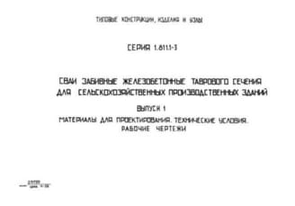 | Название стандарта | Сваи забивные железобетонные таврового сечения для сельскохозяйственных производственных зданий. |