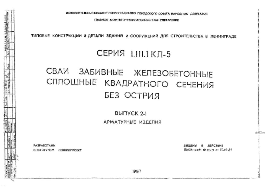 | Название стандарта | Сваи забивные железобетонные сплошного квадратного сечения без острия. |
