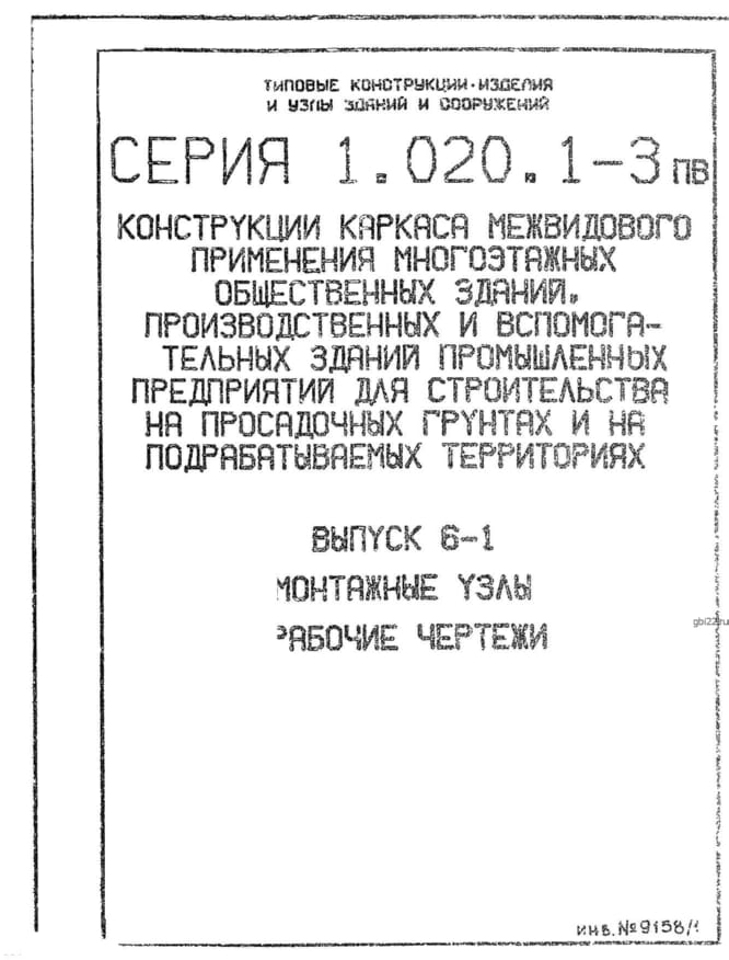 | Название стандарта | Конструкции каркаса межвидового применения многоэтажных общественных зданий производственных и вспомогательных зданий промышленных предприятий для строительства на просадочных грунтах и на подрабатываемых территориях. |