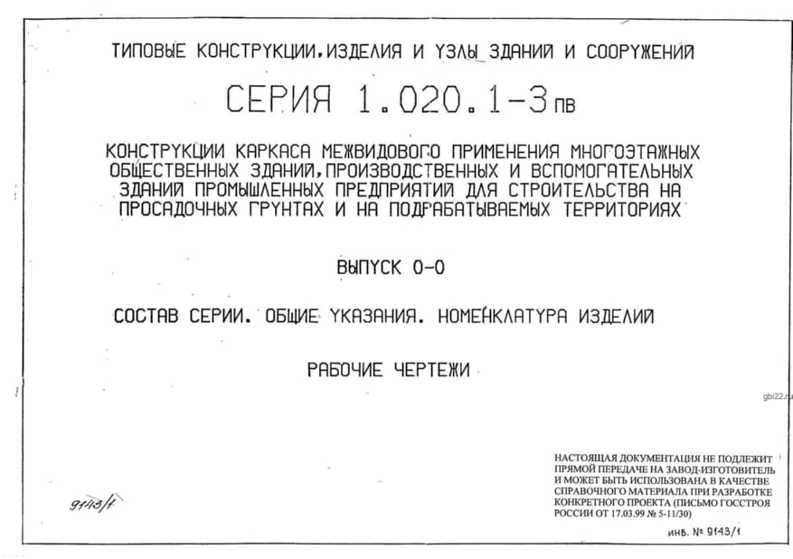 | Название стандарта | Конструкции каркаса межвидового применения многоэтажных общественных зданий производственных и вспомогательных зданий промышленных предприятий для строительства на просадочных грунтах и на подрабатываемых территориях. |
