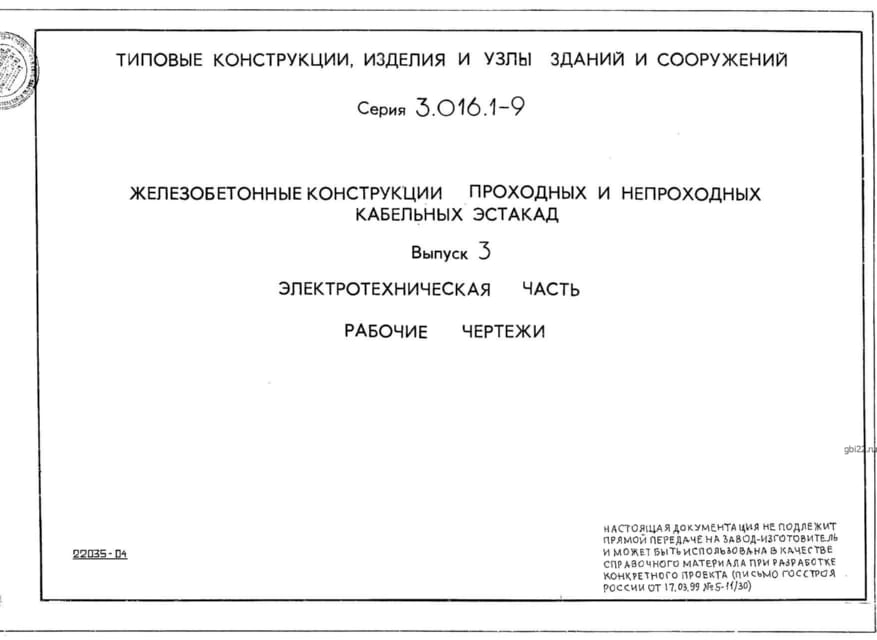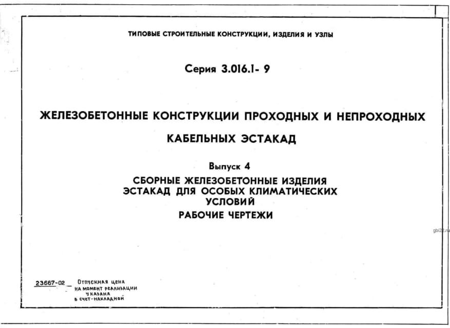 | Название стандарта | Железобетонные конструкции проходных и непроходных кабельных эстакад. |