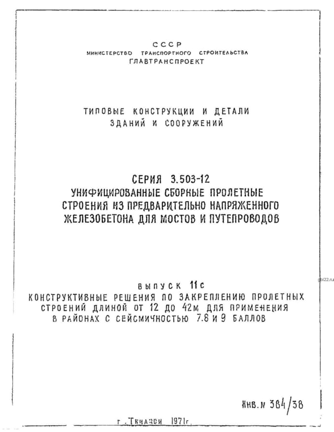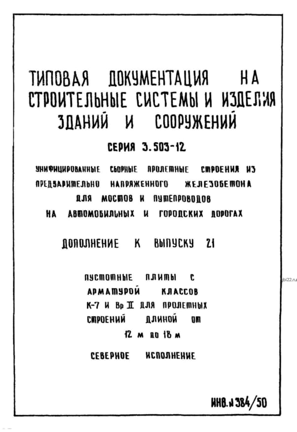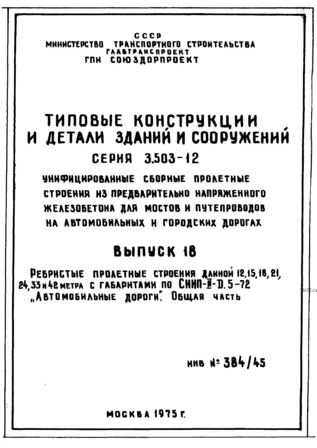 | Название стандарта | Унифицированные сборные пролетные строения из предварительно напряженного железобетона для мостов и путепроводов на автомобильных и городских дорогах. |