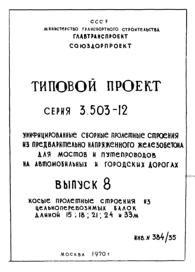 | Название стандарта | Унифицированные сборные пролетные строения из предварительно напряженного железобетона для мостов и путепроводов на автомобильных и городских дорогах. |