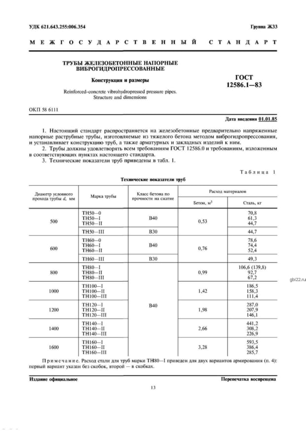 | Название стандарта | Трубы железобетонные напорные виброгидропрессованные. Технические условия. |