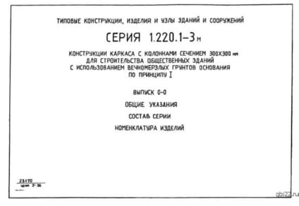 Название стандарта | Конструкции каркаса с колоннами сечением 300х300 мм для строительства общественных зданий с использованием вечномерзлых грунтов основания по принципу 1. |