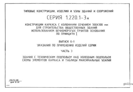 Название стандарта | Конструкции каркаса с колоннами сечением 300х300 мм для строительства общественных зданий с использованием вечномерзлых грунтов основания по принципу 1. |