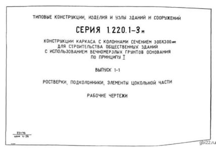 Название стандарта | Конструкции каркаса с колоннами сечением 300х300 мм для строительства общественных зданий с использованием вечномерзлых грунтов основания по принципу 1. |