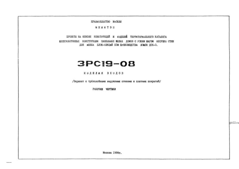 Альбом 3РС 19-08: Изделия входов (трехслойные стены и плиты покрытий) Проектная документация 3РС 19-08 содержит детализированные решения для входных узлов зданий с трехслойными наружными стенами и плитами покрытий. Альбом включает чертежи, спецификации и узлы монтажа, обеспечивающие энергоэффективность и надежность конструкций. Ключевые особенности: