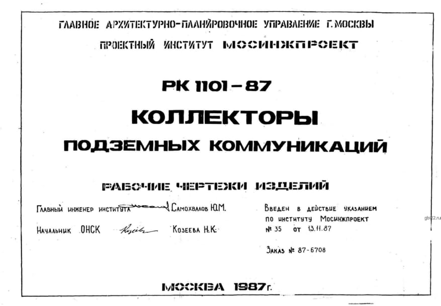 Альбом РК 1101-87 содержит детализированные рабочие чертежи для проектирования и монтажа коллекторов подземных коммуникаций. Документ регламентирует стандартные конструкции, узлы и элементы, обеспечивая надежность и безопасность прокладки инженерных сетей. Ключевые особенности: